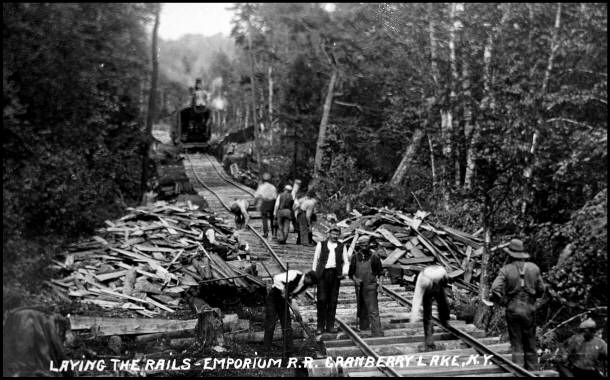 Website owned and operated by the: The Grasse River Railroad was incorporated in 1915 as an Adirondack logging and passenger rail line of William L. Sykes and his Emporium Lumber Company located in Conifer, New York. The Emporium Lumber Company had its beginnings in Pennsylvania but after 25 prosperous years Sykes began buying land in the Adirondack Mountains of New York owing to the scarcity of hardwood left in Pennyslvania. The first sawmill opened in 1911 and the corporation name for the New York operation was changed a year later to the Emporium Forestry Corporation. The slate of officers for the new corporation consisted primarily of Sykes's three sons: President and General Superintendent - George W. Sykes, Vice President and General Counsel - E. J. Jones, Vice President and Sales Manager - Roy. O. Sykes, Treasurer - W. Clyde Sykes, and Secretary - Arthur L. Owen. The Emporium Forestry Company became the largest hardwood operation in the east with Adirondack land holdings peaking at 125,000 acres.