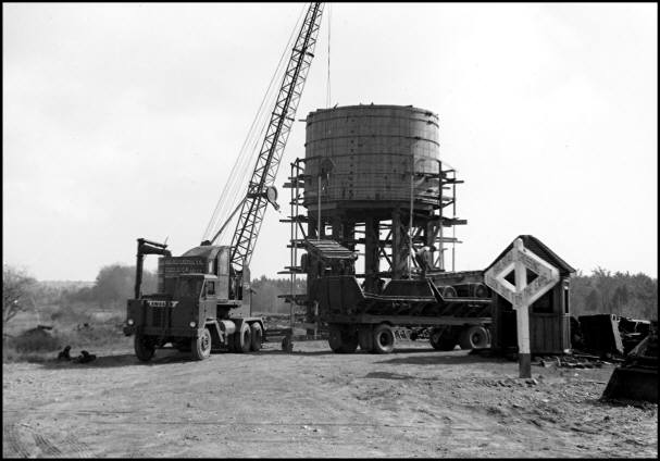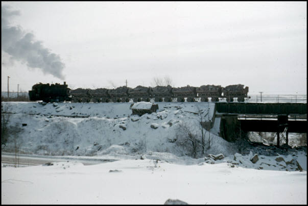 The Jamesville Quarry was located a few miles southeast of the city of Syracuse, NY in the town of Jamesville, NY. It was owned by the The Solvay Process Company, a Division of Allied Chemical. The quarry started operation in 1909 and used steam operated Manhattan engines. In 1923 the company introduced saddle tank "Dinky" locomotives to haul stone from their quarry. Rather than towing a separate tender with coal and water, water for the locomotive was carried in a tank 'saddled' over the boiler owing to the name "saddle tank." Coal was carried in a small compartment in the rear of the locomotive. "The first steam-operating railroad museum in the U.S.A." Locomotive No. 77 takes a load of crushed stone from the Jamesville Quarry to the stone crusher in February, 1954. No. 77 was a 50 ton 0-4-0 saddle tank locomotive built in 1927 by the Baldwin Locomotive Works. It was the last steam locomotive operated at the quarry and John Burke was the engineer. Dr. Groman purchased 13 steam locomotives from The Solvay Process Company. [Photo by Stanley Groman, RCHM Photo Collection] Browning Steam Crane No. 3 in operation at Solvay Process in 1954. [Photo by Stanley Groman, RCHM Photo Collection] Robert Groman (L) and Arnold Bell (R) pose by Locomotive No. 63 from the Jamesville Quarry shortly after it was transported to Rail City by the Syracuse Rigging Company. No. 63 was a 32 ton locomotive built in 1926 by the American Locomotive Company (ALCO). On August 22, 1954 No. 63 was the first locomotive fired up at Rail City. Ed Nolan from Pulaski, NY had the distinct honor of being the first engineer at the museum. [Photo by Stanley Groman, RCHM Photo Collection] Dr. Groman also purchased an eight-wheel locomotive steam crane built in 1917 by the Browning Company of Cleveland. It had a 70 foot beam, a Link Belt clamshell bucket, and a 25-ton counterweight. The steam crane had to be dismantled and moved in four separate parts to Rail City Museum and then reassembled. It took two weeks to prepare the steam crane for transport. All of the equipment from the Jamesville Quarry and Solvay Process was in operating condition at the time of purchase. In addition to the 13 steam locomotives, five Koppel quarry cars, and one Browning Steam Crane, Dr. Groman also purchased 40 tons of rail, a locomotive tank, and one cable car from The Solvay Process Company. A total of 632 tons of equipment was removed from The Solvay Process Company and transported to Rail City Museum. It took 22 truckloads to move all of this material to Rail City. Also acquired from the Jamesville Quarry were five angel beam stone cars manufactured by the Koppel Industrial Car Equipment Company. Each car weighed 9 tons, had reinforced steel trays, had 30 inch wheels, were hinged on both sides, and had a capacity of 10 cubic yards of stone. Two of the five Koppel quarry cars are unloaded at Rail City. A crane had to be available to load the equipment in Jamesville and to unload it at Rail City Museum. In the background is the 50,000 gallon water tower from Lowville, NY under construction. To the right is a flagman's shanty from Oswego, NY and a railroad crossing sign from the New York Central Railroad. The stand-pipe to the left of the crane also came from Lowville, NY. [Photo by Stanley Groman, RCHM Photo Collection] |